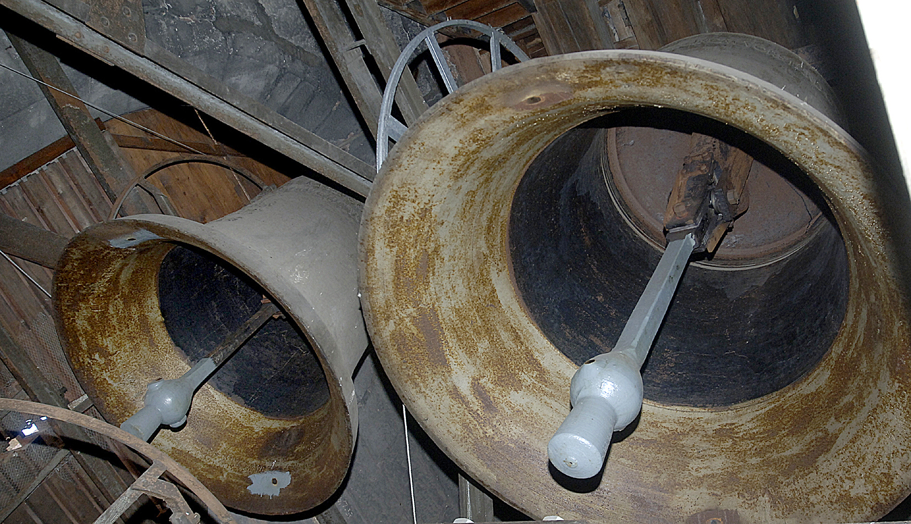 Bei einer routinemäßigen Begehung wurde festgestellt, dass Teile des Glockenstuhls durch einen Feuchtigkeitsschaden nicht mehr stabil scheinen.